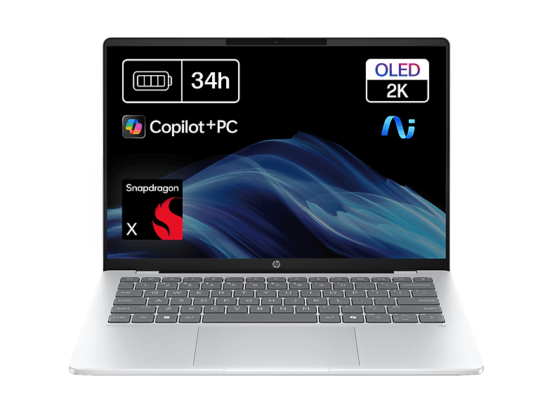 OmniBook 5 Laptop Next Gen AI 14-he0000ns, Windows 11 Home, 14", Snapdragon X, 16GB RAM, 512GB SSD, 2K, Plata glaciar